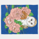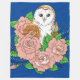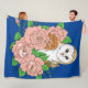 Barn Owl Pink Flowers Blue Fleece Blanket
