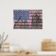 Image of an American flag painted on peeling barn wood for an antique vintage patriotic look.