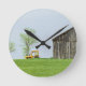 Barn Scene With Tractor Round Clock