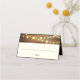 Rustic barn wood and string lights folded seating card with white area for hand writing names and table number and personalised names and message on reverse side.