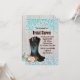 Pretty barn wood pink and teal blue cowboy boots rustic bridal shower invitation. This pretty barn wood country bridal shower invitation is easily customised for your event with your choice of font style, colour and wording.