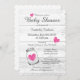 Elegant grey and white rustic mason jar baby shower invitations. Custom party invites with white wood grain panel and little white faded hearts in bright pink. Customisable scallop cutout shape. Beautiful stylish script typography with cute love symbol silhouettes. Personalizable template with RSVP and registry line. Sweet vintage outdoor barn style babyshower cards for your little prince boy or princess girl. Trendy country chic stationery paper designs for pregnant women / mum to be. Part of matching collection including gorgeous envelopes and other pretty accessories.