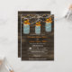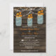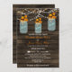Rustic Barnwood, dangling string lights with Fall maple leaves in a mason jar wedding invitations. Matching products also available.