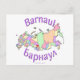 Beautiful hand-rendered colourful map of the Russian Federation with Barnaul city location marked with a flag. City name also in Russian. Unique Russia family or adoption gift for families with children from Barnaul of Altai Krai. Designed by Hendrika of www.RedThreadMaps.com