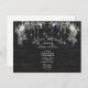 This is a beautiful rustic Bridal Shower post card with a black barnboard, a few sets of silver sparkly string lights and a watercolor Purple Wisteria