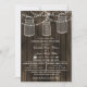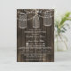 Rustic Barnwood, dangling string lights with mason jars rustic rehearsal dinner invitations.
