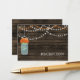 Rustic Barnwood, dangling string lights with orange flowers in a mason jar wedding reception invite. Matching products also available.