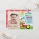 This cute & colourful design features illustration of adorable farm animals on a tractor. You can easily personalise the invite with your details and photo. For more advanced customisation of this design, simply select the "Customise Further" button. © Blue Bunny Studio