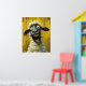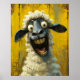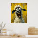 Turn any wall into a laughter-inducing focal point with this vibrant, high‐quality poster featuring an outrageously expressive sheep. Rendered in bold brushstrokes and rich hues of golds and slate blues, this cartoon sheep flaunts wide, googly eyes and a comically toothy grin that seems to burst right off the page. Set against a distressed golden‐yellow wooden‐plank backdrop, the sheep’s curly white fleece and cheeky personality pop in contrast—guaranteed to brighten nurseries, dorm rooms, game rooms, or quirky office spaces. Perfect for animal lovers, fans of whimsical art, or anyone who appreciates a dash of barnyard humour.