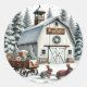 Barnyard, Rabbits pulling cart with Gifts, Winter Classic Round Sticker