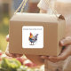 Seal envelopes, decorate jars or add branding to homemade goods with this vivid watercolor chicken sticker. The lively strokes of orange and teal feathers instantly brighten packaging. Add playful text right on the sticker, such as “Fresh from Jane’s Coop” around the edge or “Egg-cellent Thanks!” across the bottom, for a personalised, professional finish.