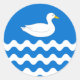 "Per fess wavy azure and barry wavy argent and azure, a duck naiant contourny argent billed or."
