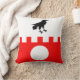 "Per fess embattled argent and gules, in pale a raven, close and sinister facing, sable and a plate argent." Populace badge for the Barony of Raven's Fort in the Society for Creative Anachronism. Back of pillow is a mediaeval-style pattern in coordinating colours.