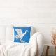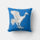 “(Fieldless) A crane rising contourny argent.” Background colour (shown blue) can be changed on request. Back of pillow is a mediaeval-era pattern in coordinating colours.