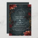 An opulent gothic wedding design featuring dark botanical flourishes, rich burgundy florals, and antique gold baroque framing. Set against a textured charcoal background, this moody composition is ideal for romantic Halloween weddings, alternative ceremonies, or dramatic vintage affairs. Fully customisable for names, date, and location—crafted for couples with a flair for the mysterious and the magnificent.