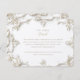 This sophisticated wedding card features a stunning baroque floral design. The intricate ivory and cream-coloured patterns adorn a pristine white background, enhanced by elegant script in black and gold. The luxurious design elements create a timeless and regal frame around the text, making this set perfect for a high-class wedding celebration. Ideal for couples looking to add a touch of elegance and opulence to their special day, this set provides everything you need to beautifully invite and inform your guests.