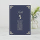 Elegant baroque navy blue and gold wedding seating chart featuring ornate vintage flourishes, sophisticated typography, and a formal layout to guide guests to their tables. Perfect for luxury weddings, this seating chart is fully customisable with guest names, table assignments, and your wedding details. A timeless and classy design that matches an entire baroque navy wedding suite, adding refinement to your reception décor.