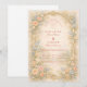 This luxurious wedding design features a soft antique ivory background framed by romantic blush roses, delicate greenery, and ornate baroque gold detailing. Inspired by classic European elegance, the composition feels refined, timeless, and opulent, with flowing florals and sculpted gold accents that create a graceful, romantic atmosphere. Perfect for couples drawn to vintage charm, old-world luxury, and an elevated, elegant wedding aesthetic.