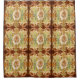 A baroque tapestry pattern featuring flowers, roses, ribbon, and scroll design. In rich colours of amber, green, cream, blue and pink. Very ornate and pretty.