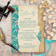 Add timeless charm to your wedding suite with this baroque turquoise floral lace wedding enclosure card. Designed with an elegant vintage lace motif and intricate scroll accents, this insert features a soft parchment-style background in muted beige with vibrant turquoise detailing — perfect for adding colour and texture to your wedding stationery. Ideal for rustic, boho, western, or vintage-inspired weddings, this card is a beautiful way to share reception details, accommodations, or your wedding website. Fully customisable and perfect for fall, spring, or destination weddings, it brings romantic flair to your invitation suite.
