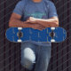 This skateboard design was originally chosen by a relative of the designer. It is blue in colour and has various sizes to choose from.