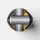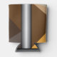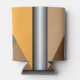 Barred foam can cooler. Barred is an abstract design created by Vexenwraith and consists of brown, orange, tan, and grey shapes behind silver gradient bars.
