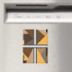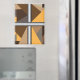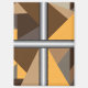 Barred round, square, and rectangle magnets. Barred is an abstract design created by Vexenwraith and consists of brown, orange, tan, and grey shapes behind silver gradient bars.