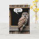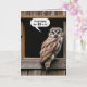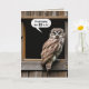Barred owl with black framed eyeglasses in rustic barn window for 40th birthday