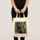 The printing came out very well, better than I had anticipated. The natural color fabric is sturdy with strong seams and comfortable handles. This tote fits easily over my shoulder. As it is filled, the bottom flattens out--very cool! I would buy this product again. This grocery tote holds a lot of groceries! The image quality was very good. The colors were a little darker than I had expected. The darkness may have been due to printing on a natural color fabric rather than on white. The cat design is attractively centered on the tote. The spirit of the design is very lively, just as it appears on the Zazzle website.