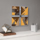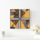 Barred wall clocks with white numbers. Barred is an abstract design created by Vexenwraith and consists of brown, orange, tan, and grey shapes behind silver gradient bars.