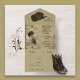 A country western display features a barrel, cowboy hat and boots. The perfect theme for your western wedding. An all in one invite that includes tear off RSVP.