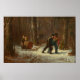 On Their Way to Camp Is a Beautiful Winter Scene Painting set in a Snowy forest with Two guys pulling a Barrel on a sled. This painting was made by the American artist Eastman Johnson (1824 - 1906)