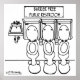 A restroom with no walls between three toilets, "Barrier Free Public Restroom."