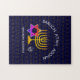 Stylish, elegant HANUKKAH BLESSINGS Jigsaw Puzzle. Design shows a gold coloured MENORAH with multicolored STAR OF DAVID and silver grey DREIDEL. At the top there is curved text which says BARUCH ATAH, ADONAI (Blessed are You, O God) and underneath the text reads HANUKKAH BLESSINGS. ALL TEXT IS CUSTOMIZABLE, so you can personalise with your own choice of greeting and text. The background coloris midnight blue. Other versions are available in the HANUKKAH Collection by Berean Designs.