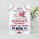 Ready for a cool sports birthday party? This design features a handpainted classic white background, navy blue and red text, a baseball, stars, a helmet with bat and ball illustrations, and "Hitting the big one", and "Swing over" typography. All text is editable on this birthday invite and budget-friendly postcards are available too! This design is for any age, gender-neutral, and is fully customisable for 1st birthday, 2nd birthday, and older kids. Find matching items in my shop.