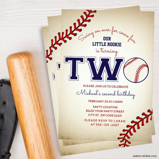 It's one, TWO!! This vintage style second birthday baseball favour or gift tag can be used with for a number of different items for your party. It's designed with a rustic style vintage background with baseball threads around the edges. Additional party items are available at Metro-events party shop on Zazzle.