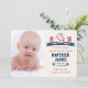 These baby boy golf baby birth announcements are sure to delight the parents and their friends and family who know they love baseball. Add a photo to the front and add more baby pictures to the back to make an awesome photo collage to show off your little all star and MVP. A baseball with a red heart, navy blue and red stars and striped cream background add to the charm of this sports themed baby announcements. Add up to 5 pictures to these announcements because it's too hard to choose only one photo of your future baseball player. Perfect for the parent who plays or coaches a baseball, plays baseball or loves baseball. Artwork © Chrissy H. Studios, LLC. All rights reserved.