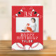 Baseball Ball Flags Sports Kids Photo Birthday Card. The design has baseball balls and birthday party bunting flags in red, black and white colors. Add your photo, name, age and text and make your own birthday card. Great for boys and girls who love baseball.