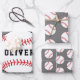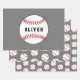 Baseball Ball Grey Pattern Kids Name Birthday Wrapping Paper Sheet
