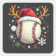Baseball Ball with Reindeer Horns and Christmas Square Sticker