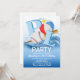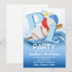 The bright blue water backdrop with playful typography creates an exciting, energetic feel that kids will love. All text is fully customizable — personalize the birthday boy's name, age, date, time, and location with ease. Don't forget to remind guests to bring a swimsuit and towel!