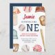 Get ready to celebrate a grand slam of cuteness as your little one hits a big one and turns ONE! Our exclusively designed invitation captures the spirit of a baseball adventure with delightful watercolor images of various baseball equipment adorning the edges.