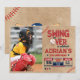 Ready for a cool sports birthday party? This design features a handpainted classic white background, navy blue and red text, a baseball, stars, a helmet with bat and ball illustrations, and "Hitting the big one", and "Swing over" typography. All text is editable on this birthday invite and budget-friendly postcards are available too! This design is for any age, gender-neutral, and is fully customisable for 1st birthday, 2nd birthday, and older kids. Find matching items in my shop.