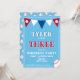 Cute Blue Boy Baseball 3rd Birthday Invitation // Cute baseball birthday party card for the 3rd birthday. The design has a large baseball and bunting flags in red, white and blue colours on a blue background. The back side has a baseball pattern. Personalise this birthday invite with a child`s name and personalise all the data on the invitation. Great as a 3rd birthday party invitation for a boy.