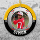 Celebrate your child's athletic triumphs in little league, college or high school baseball or soft ball team with this Baseball Black Gold Team Colours Ornament. Personalise with your child's photo, name and the year. A great gift idea for Grandma and Grandpa.