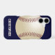 This case for the Samsung Galaxy or iPhone is decorated with a large baseball on a dark blue background, and personalized with name or other text. It's easy to modify or delete example text. What a wonderful complement for your new phone. Wonderful gift for baseball or softball players, fans, or coaches. Matching greeting cards, wrapping paper, and other gifts available at www.zazzle.com/SocolikCardShop. All Rights Reserved © 2026 Alan & Marcia Socolik.