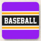 This sporty, colourful design features athletic BASEBALL text inside a highlighted wide black stripe with white and yellow pinstripes against bright purple outer stripes. The text and colours in this design can be personalised.