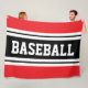 BASEBALL Bright Red Black White Racing Stripes Fleece Blanket