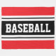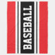 This sporty, athletic design features bold BASEBALL text inside highlighted horizontal black and white racing stripes against bright red outer stripes. The text in this design can be personalised.