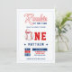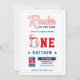 This adorable baseball-themed 1st birthday invitation is perfect for your baby boy’s first birthday party. Designed in bold red, navy blue, and white, it features playful sports graphics and a unique twist on the word "ONE" — the "O" is replaced with a baseball wearing a cute little cap! It's a fun and memorable detail that adds charm to your celebration.
